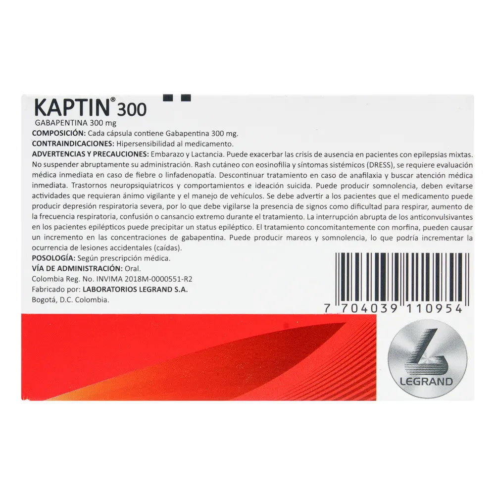 Compra Kaptin 300 Mg Caja X 30.00 Tab en Droguerías Multifarma