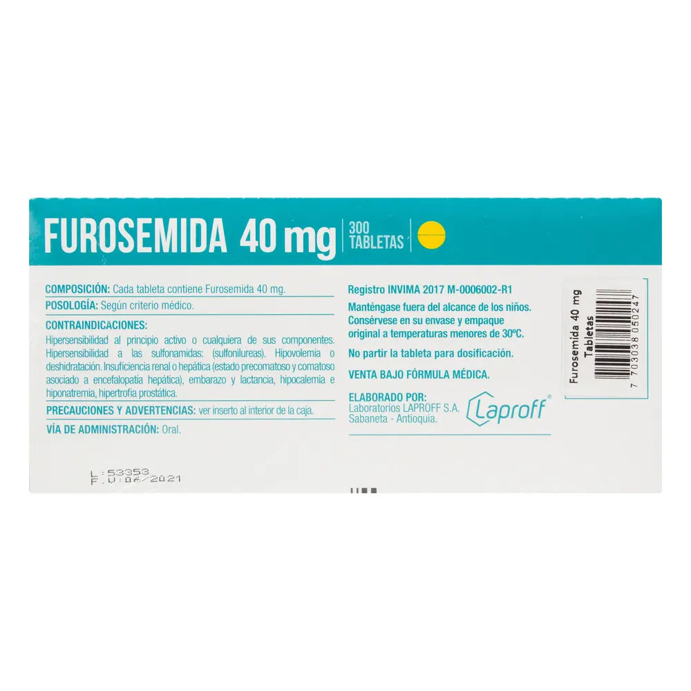 Compra Sobre x 10 Tableta Furosemida 40 Mg en Droguerías Multifarma