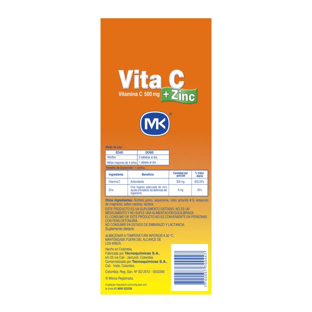 Compra Vitamina Vita C + Zinc Mk Masticable Naranja Caja X 100 Tab en Droguerías Multifarma